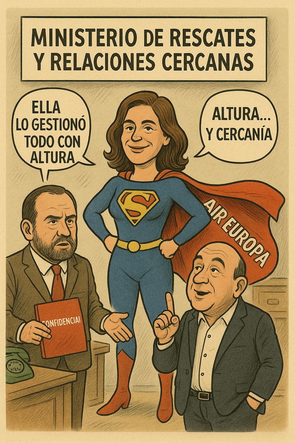 Ha estallado la paz. Ábalos y Koldo dejaron grabadas entrevistas muy agresivas contra Begoña Gómez por el rescate de Air Europa. Ábalos asegura que Javier Hidalgo le dijo que Begoña Gómez había gestionado la “ayuda” a Air Europa. Koldo va más allá y asegura que el trato entre Javier Hidalgo y Begoña Gómez era “muy, muy cercano”, que se entendían y que tenían una relación “personal y empresarial”. Quien quiera entender, que entienda… Se suma a lo que contó ayer: que Begoña Gómez se llevó un millón de euros en compensación por el rescate de Air Europa.
