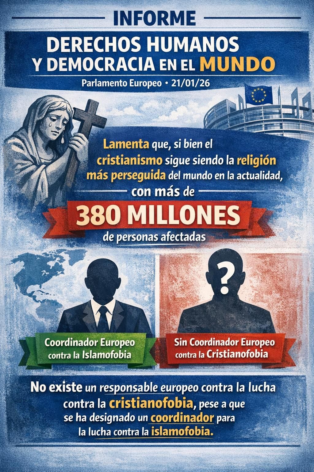 Por eso desde el Observatorio de Libertad Religiosa han celebrado esta semana que el Parlamento Europeo, por vez primera, haga referencia a la “cristianofobia” en su informe sobre la situación de los Derechos Humanos en el 2025.