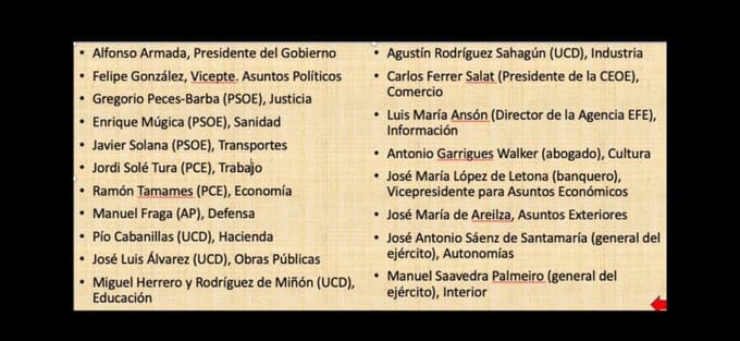 Este era el pretendido gobierno Armada que frustró Tejero: mayoría de comunistas y socialistas. ¿Y no estaban en el golpe?