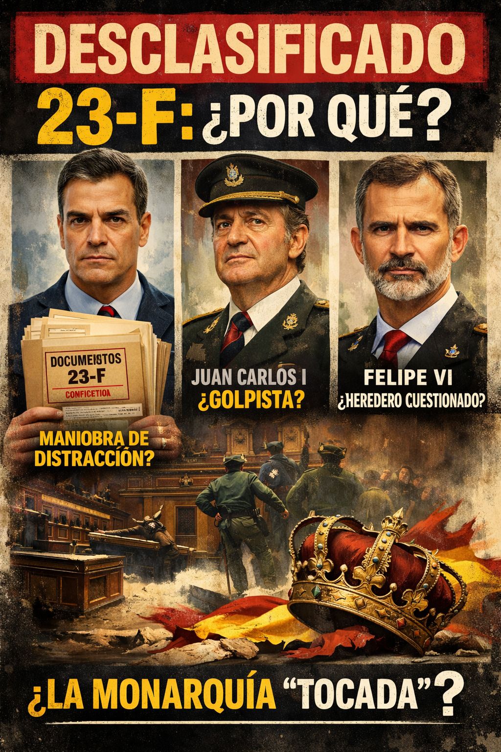 Pero hay más. La desclasificación del 23F pretende desprestigiar a la Monarquía, acusar a Juan Carlos I de estar detrás del golpe y a su hijo de ser su heredero político. Un daño reputacional que permite abrir el debate monarquía-república con más garantías.